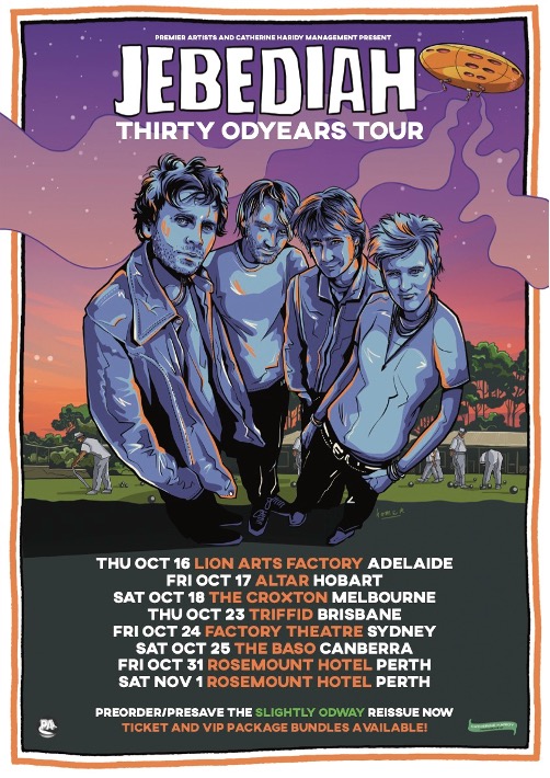 . Of Someday Shambles and Jebediah reissues are out October 10. JEBEDIAH – UPCOMING THIRDY ODYEARS TOUR DATES: Presented by Double J Tickets available from https://jebediah.ffm.to/thirtyodyears THURS 16 OCT | LION ARTS FACTORY, ADELAIDE SA | TICKETS FRI 17 OCT | ALTAR, HOBART TAS | TICKETS SAT 18 OCT | THE CROXTON, MELBOURNE VIC | TICKETS THURS 23 OCT | TRIFFID, BRISBANE QLD | TICKETS FRI 24 OCT | FACTORY THEATRE, SYDNEY NSW | TICKETS SAT 25 OCT | THE BASO, CANBERRA ACT | TICKETS FRI 31 OCT | ROSEMOUNT HOTEL, PERTH | TICKETS SAT 1 NOV | ROSEMOUNT HOTEL, PERTH | TICKETS [image.jpeg]